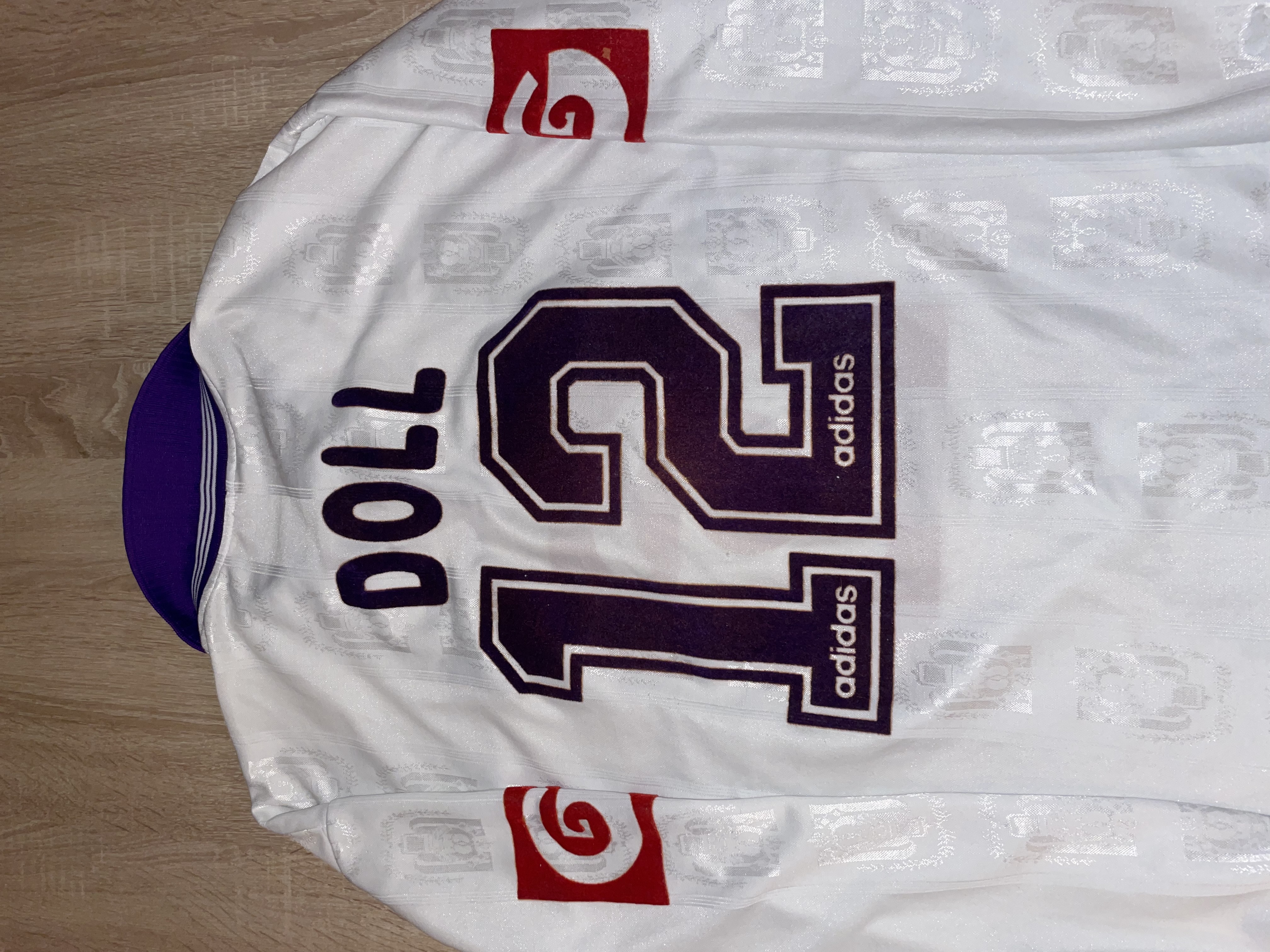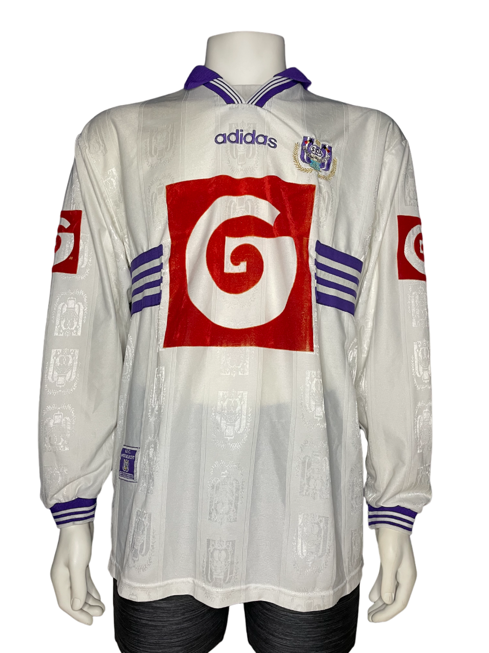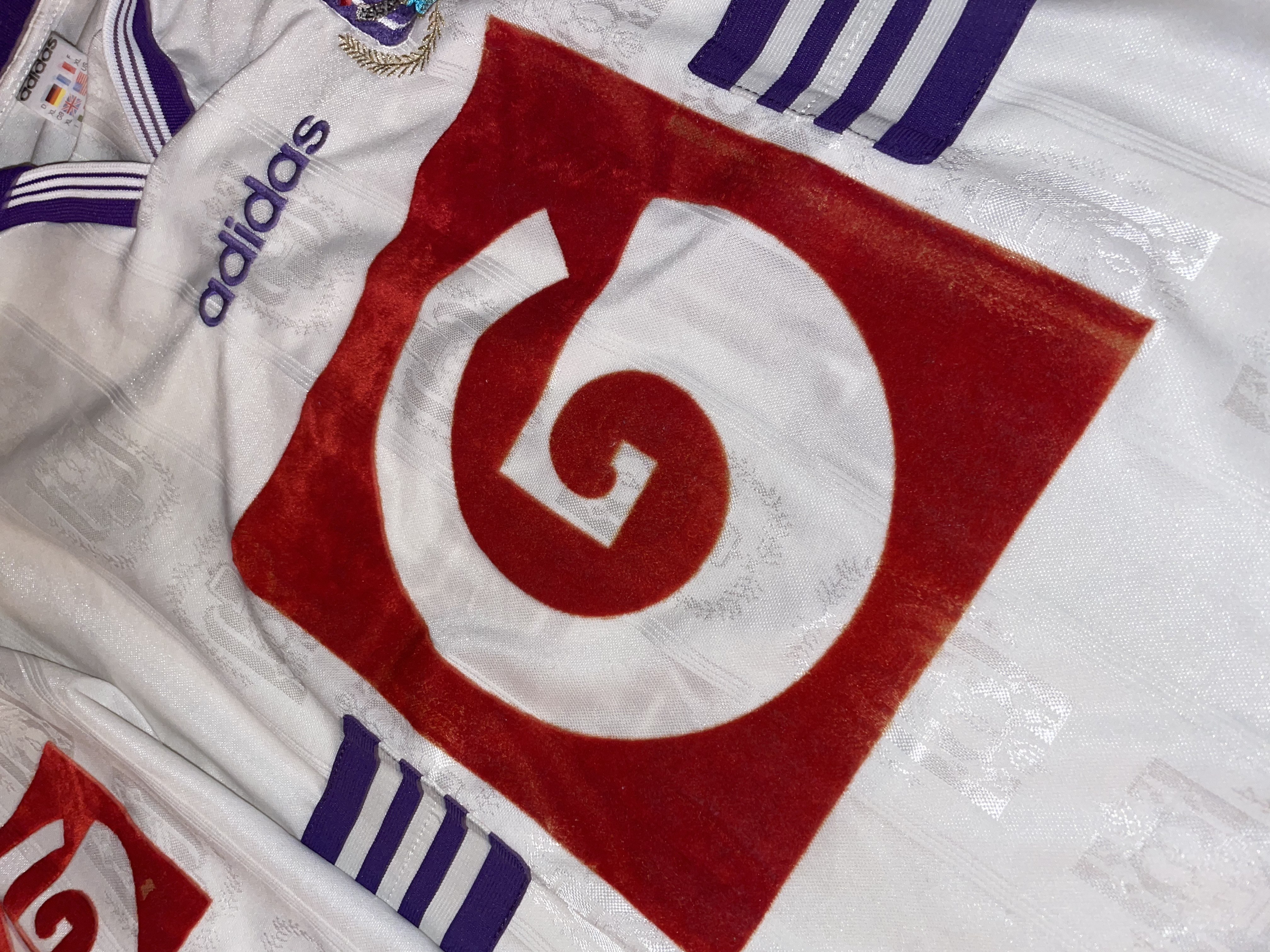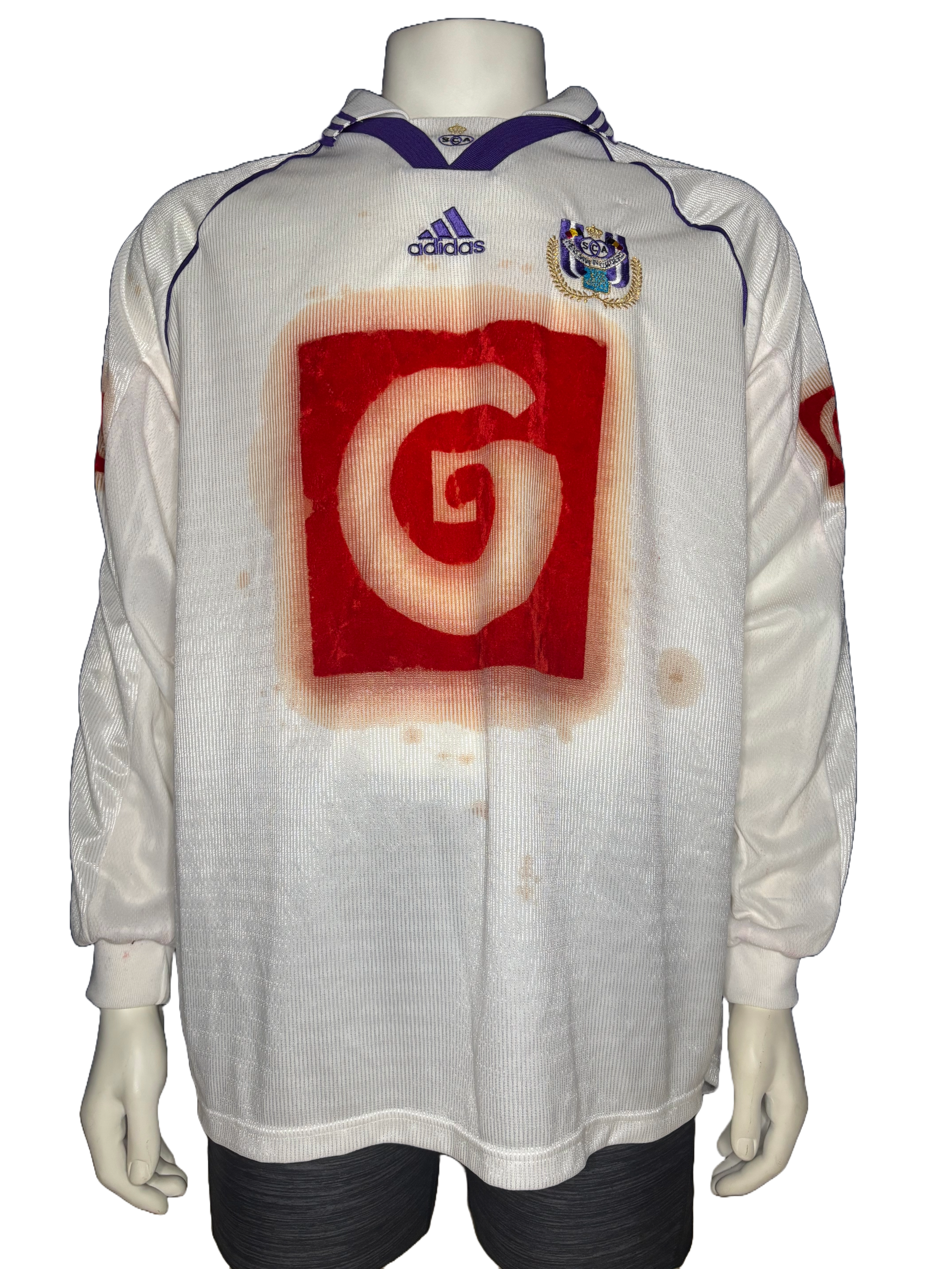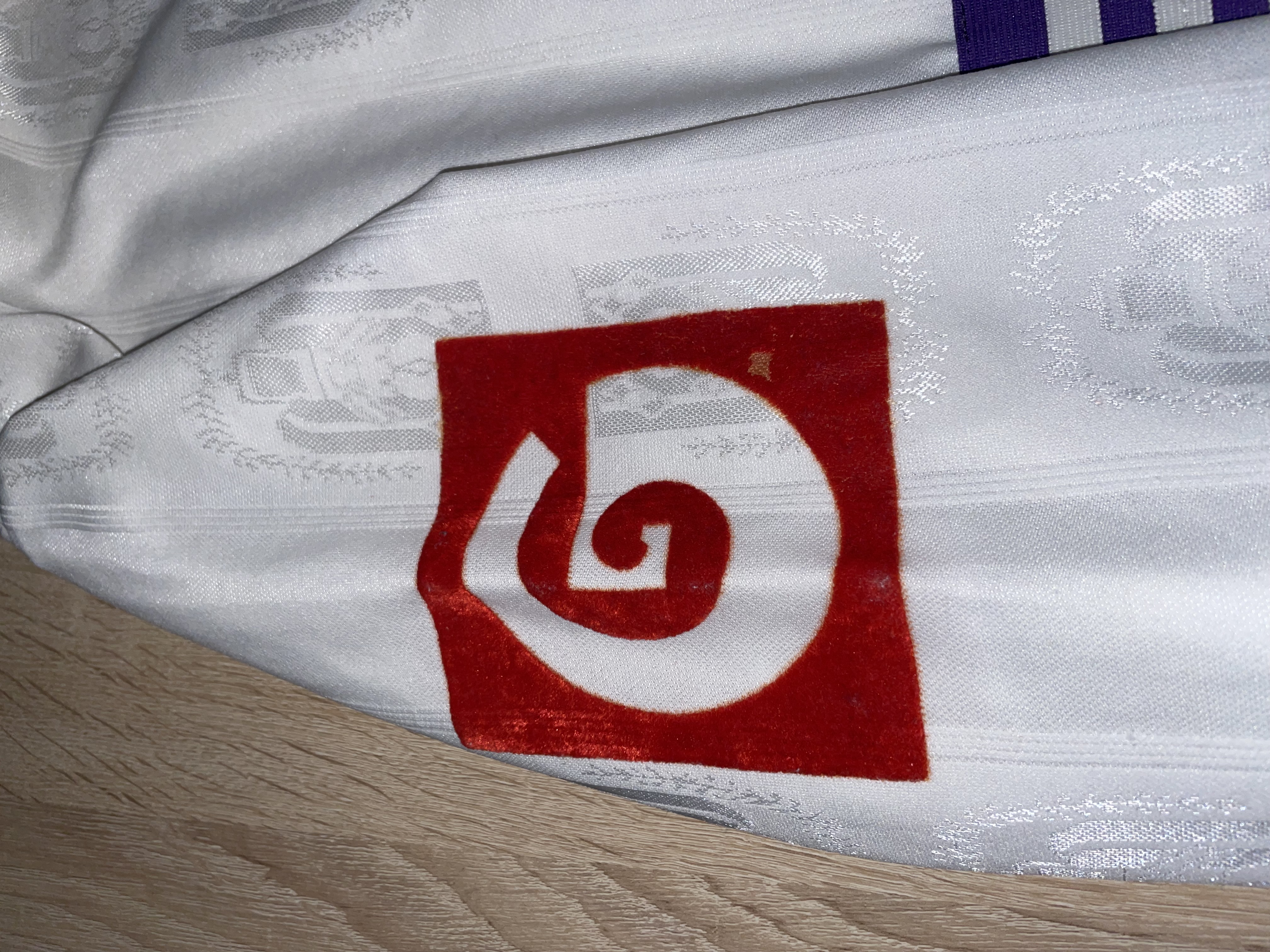 Match version features: The shirt features a "G" on the chest made of a different material compared to the fanshop shirts from that time, as well as a "G" sponsor on the sleeves. These features were not commercially available at the time, indicating that this is a match shirt.