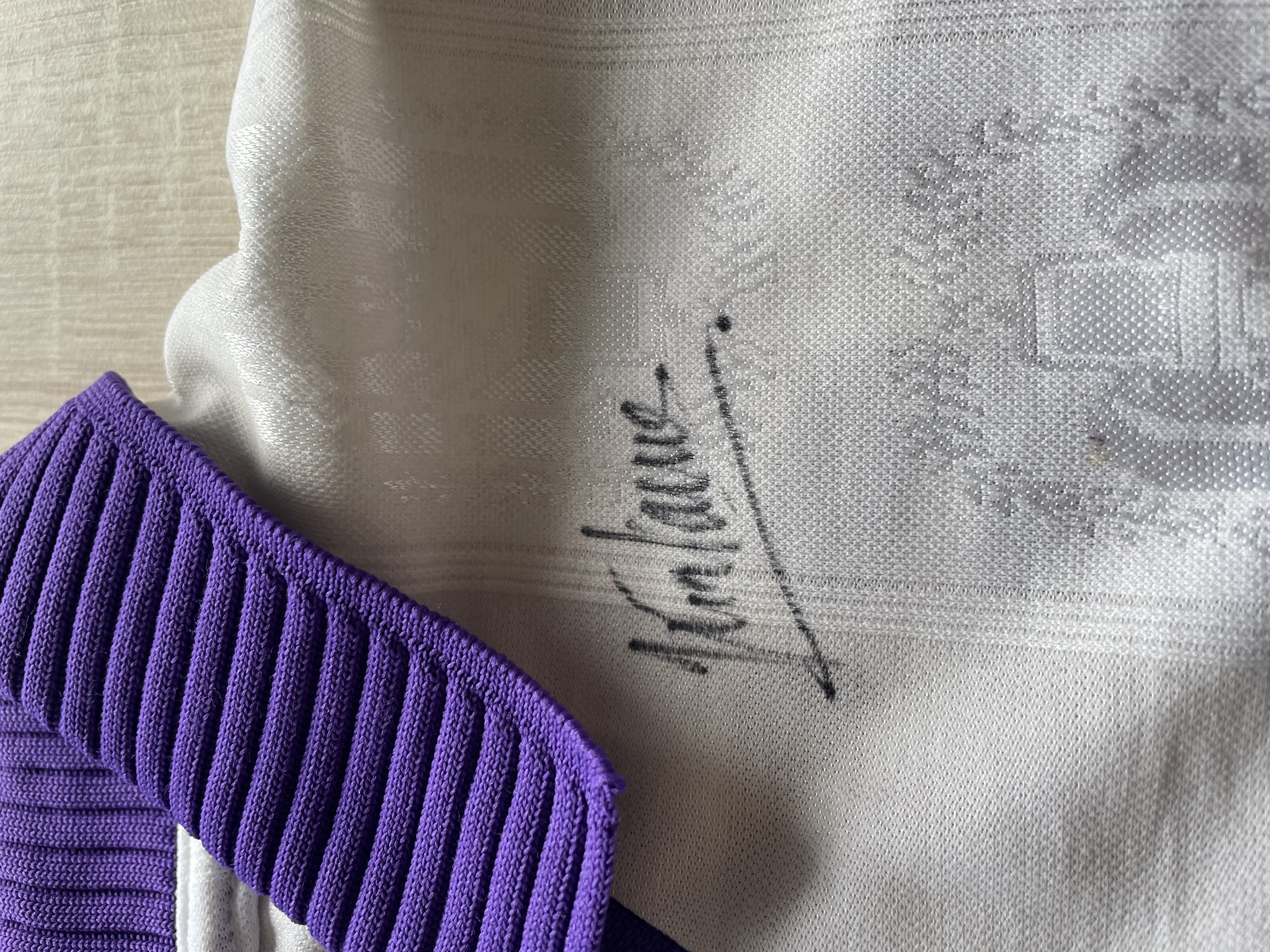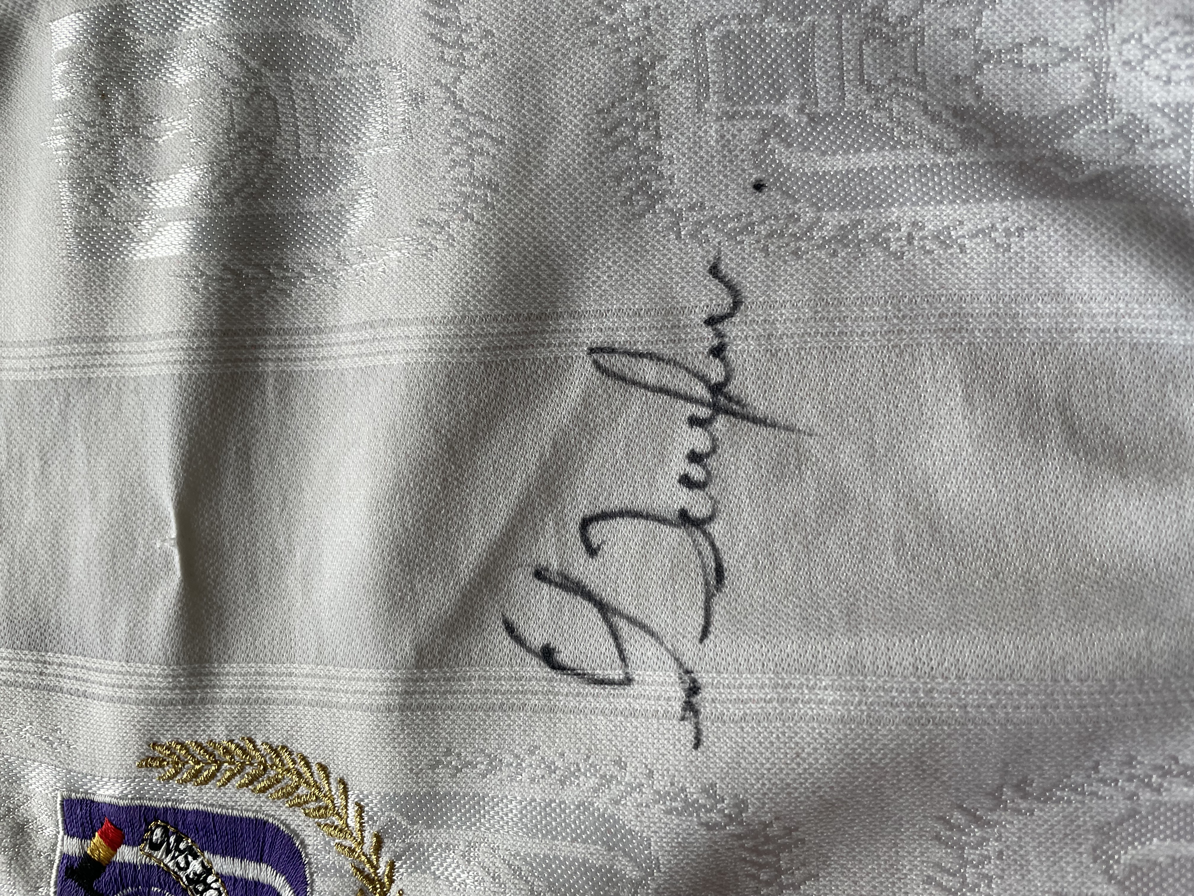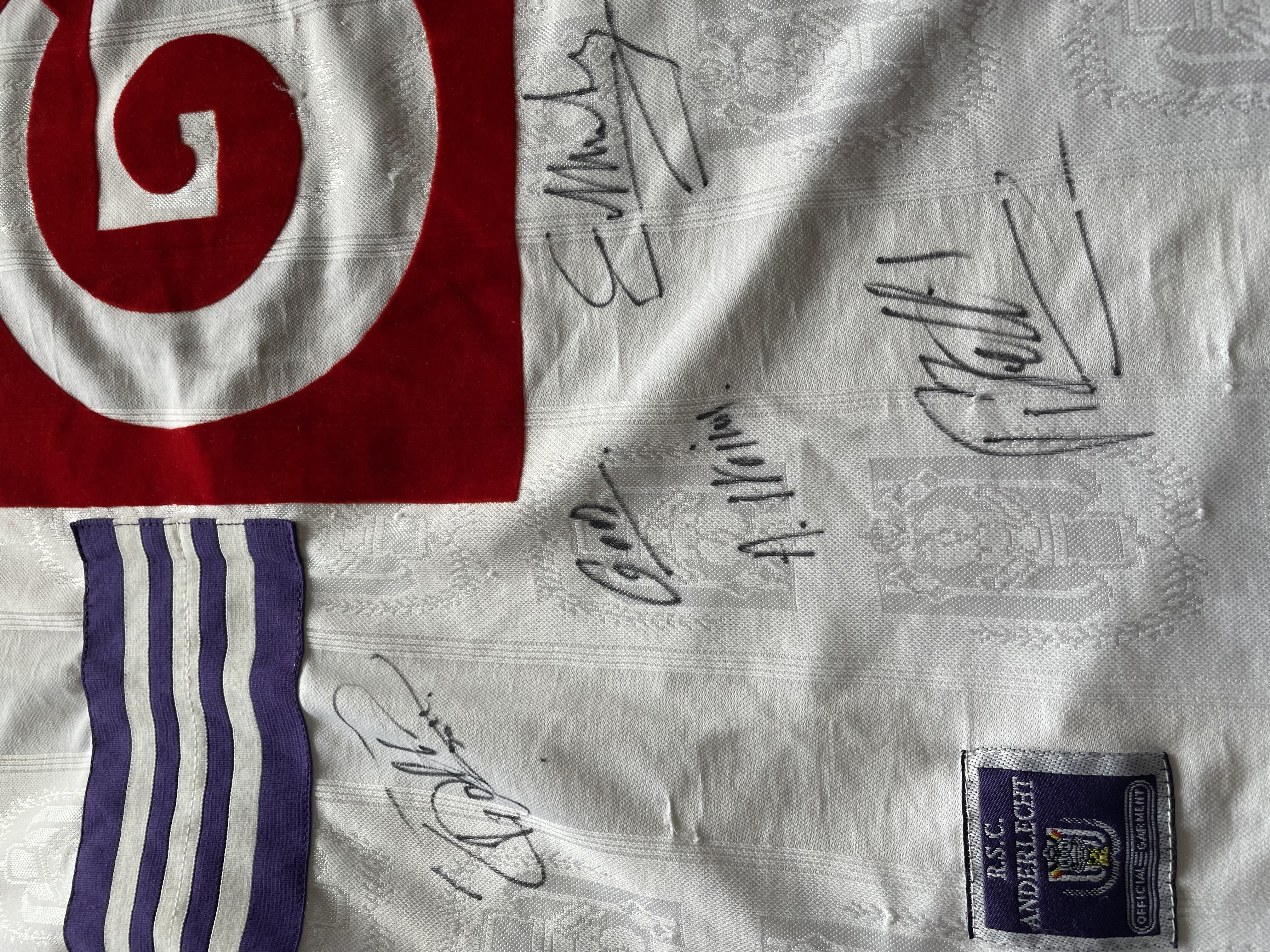 The shirt is signed by the whole squad.