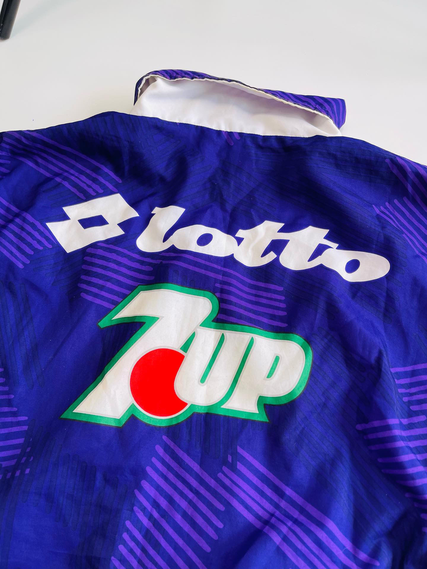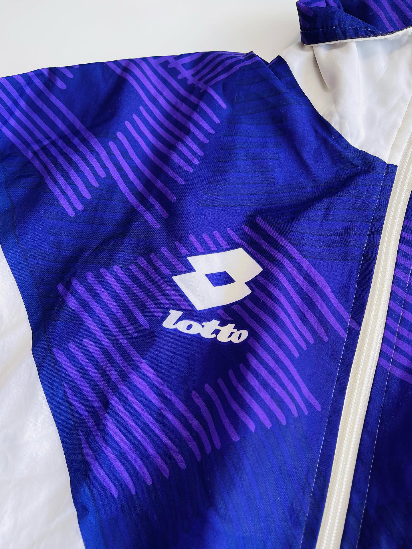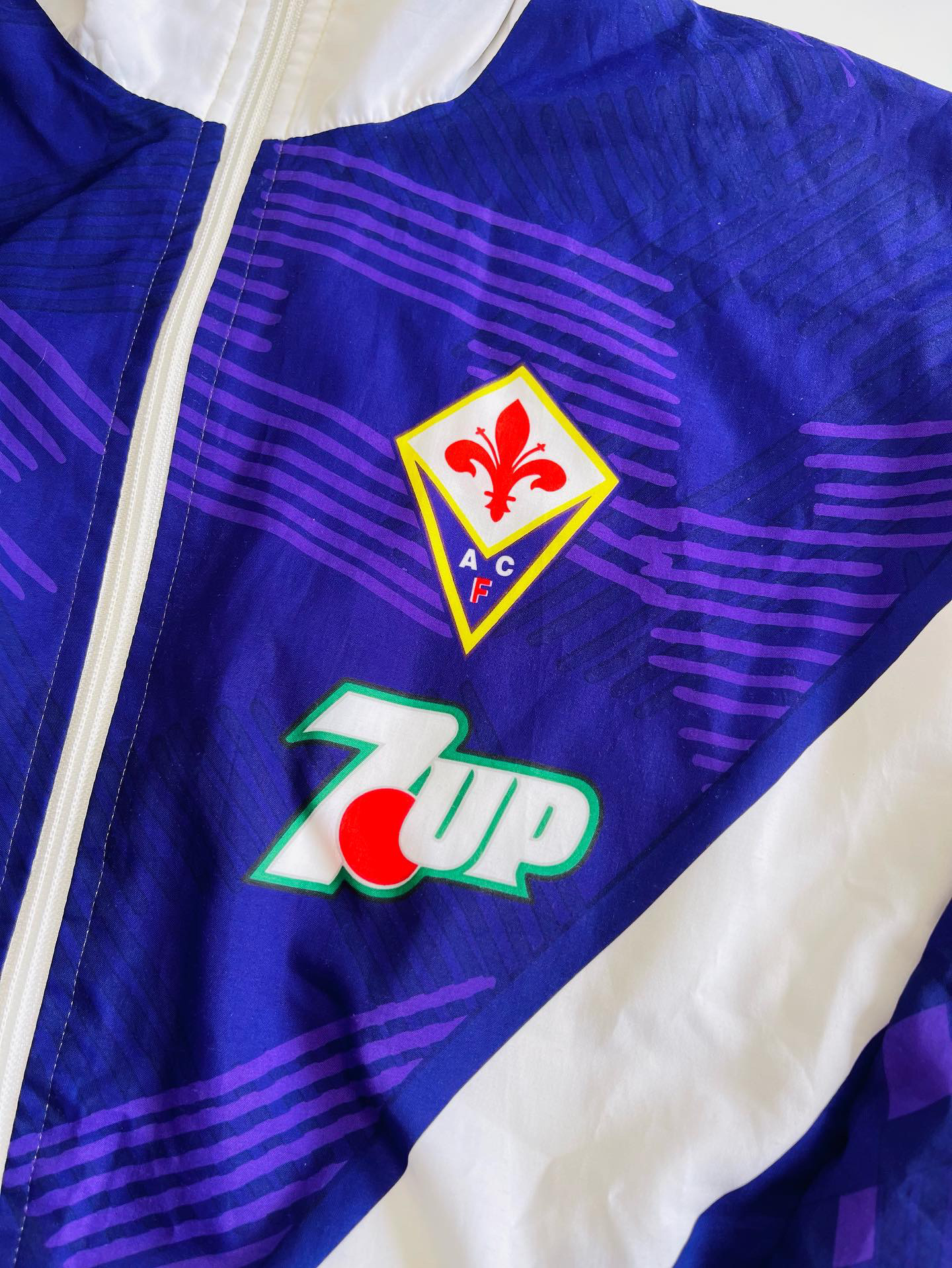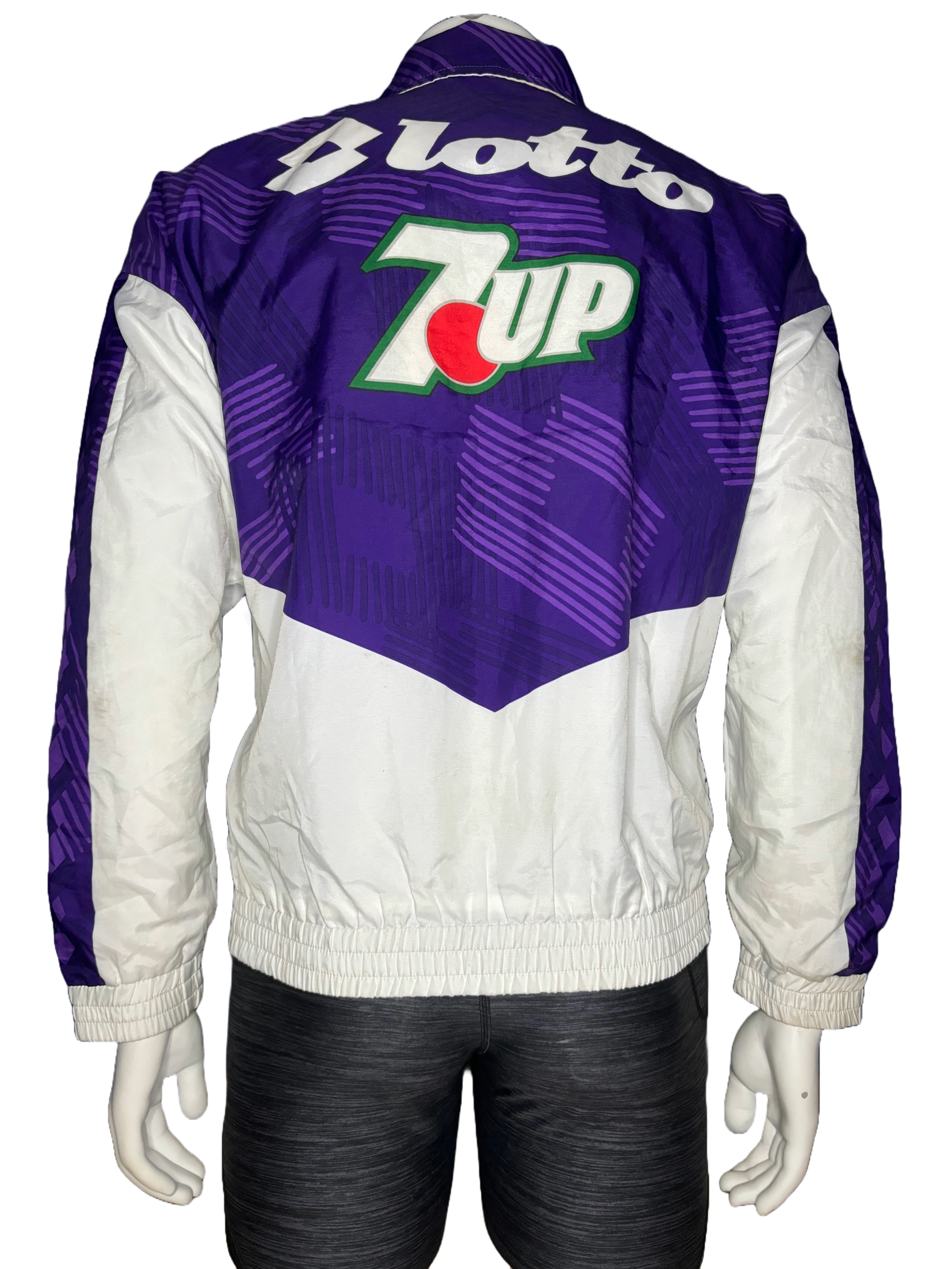 Extremely rare Fiorentina x Lotto track jacket from the 1992-93 season. All logos and sponsors are printed in the fabric. In excellent condition, minimal signs of wear.